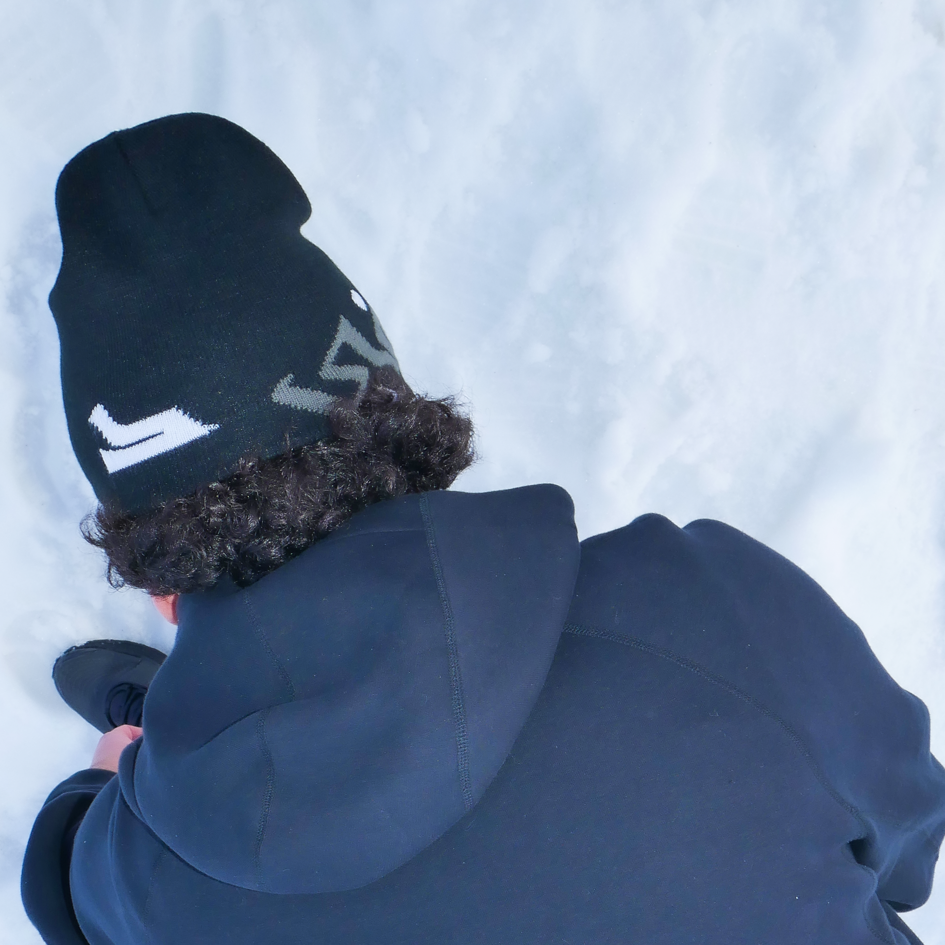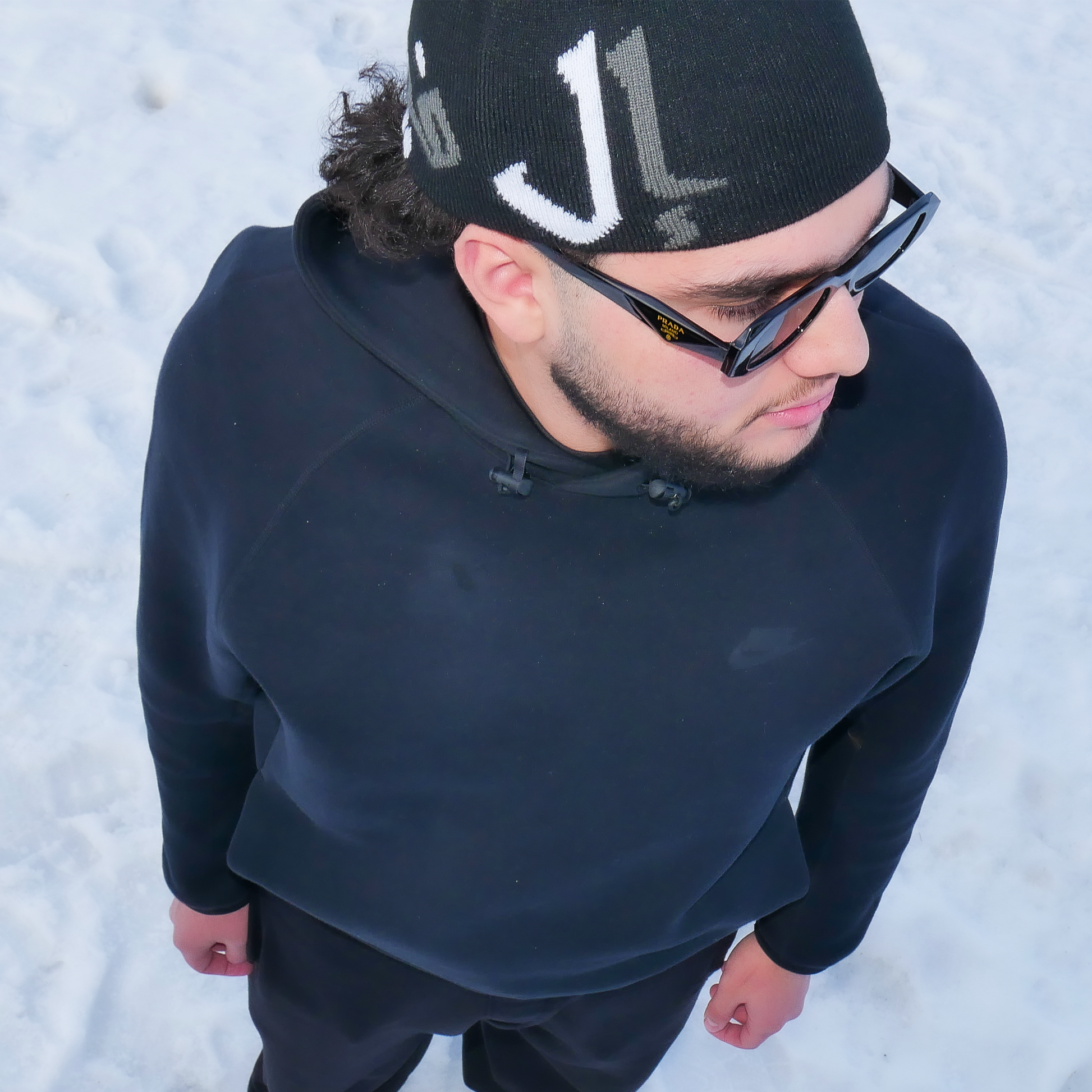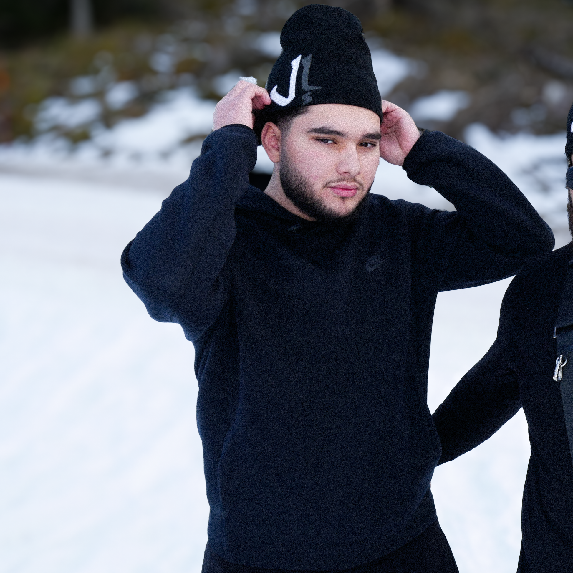 Apportez une touche de style et de confort à vos tenues avec ce bonnet noir unique, orné de l'inscription "LVD" en arabe, qui allie tradition et modernité. Les lettres sont mises en valeur grâce à un contraste subtil entre le gris sombre et le blanc, créant un effet visuel à la fois chic et discret.